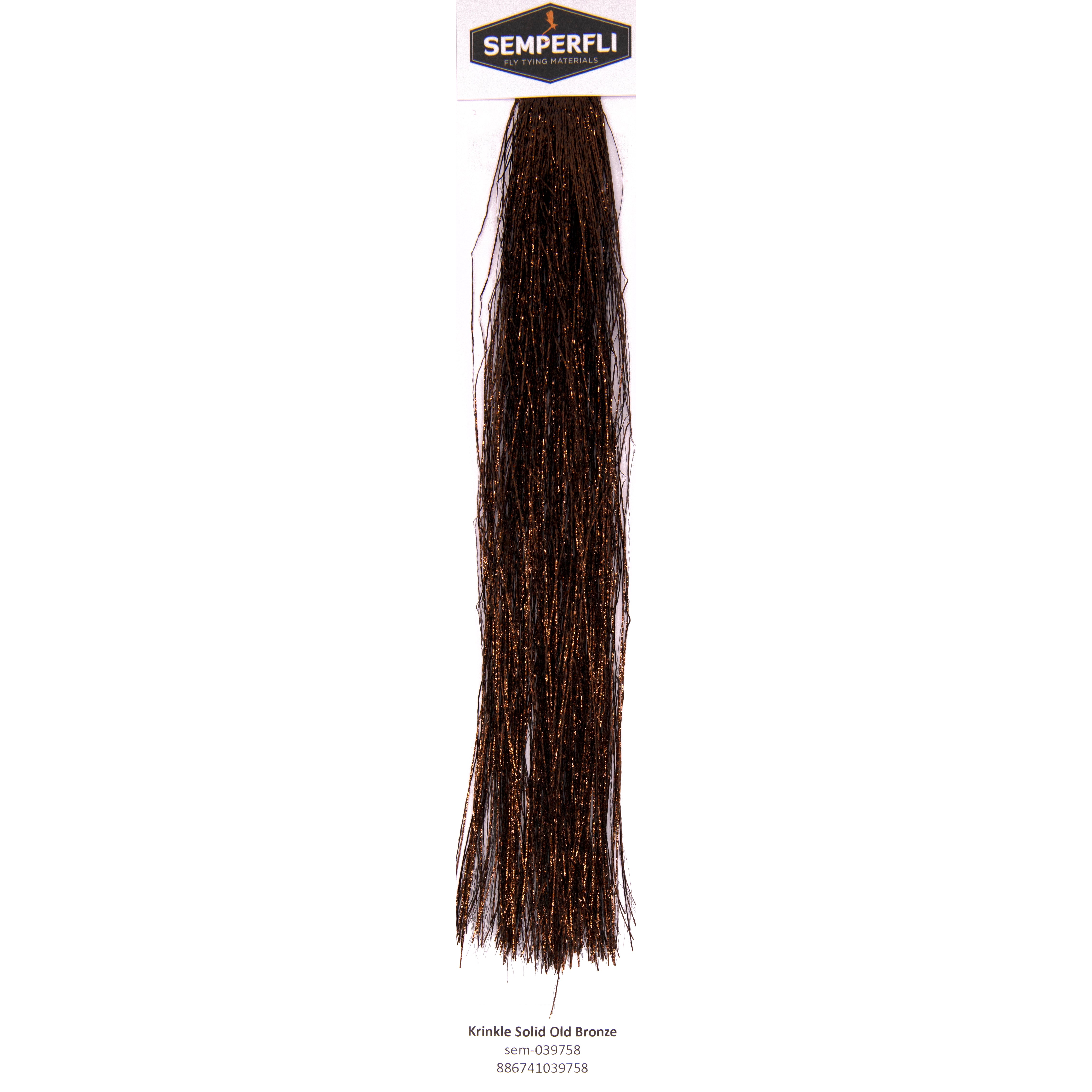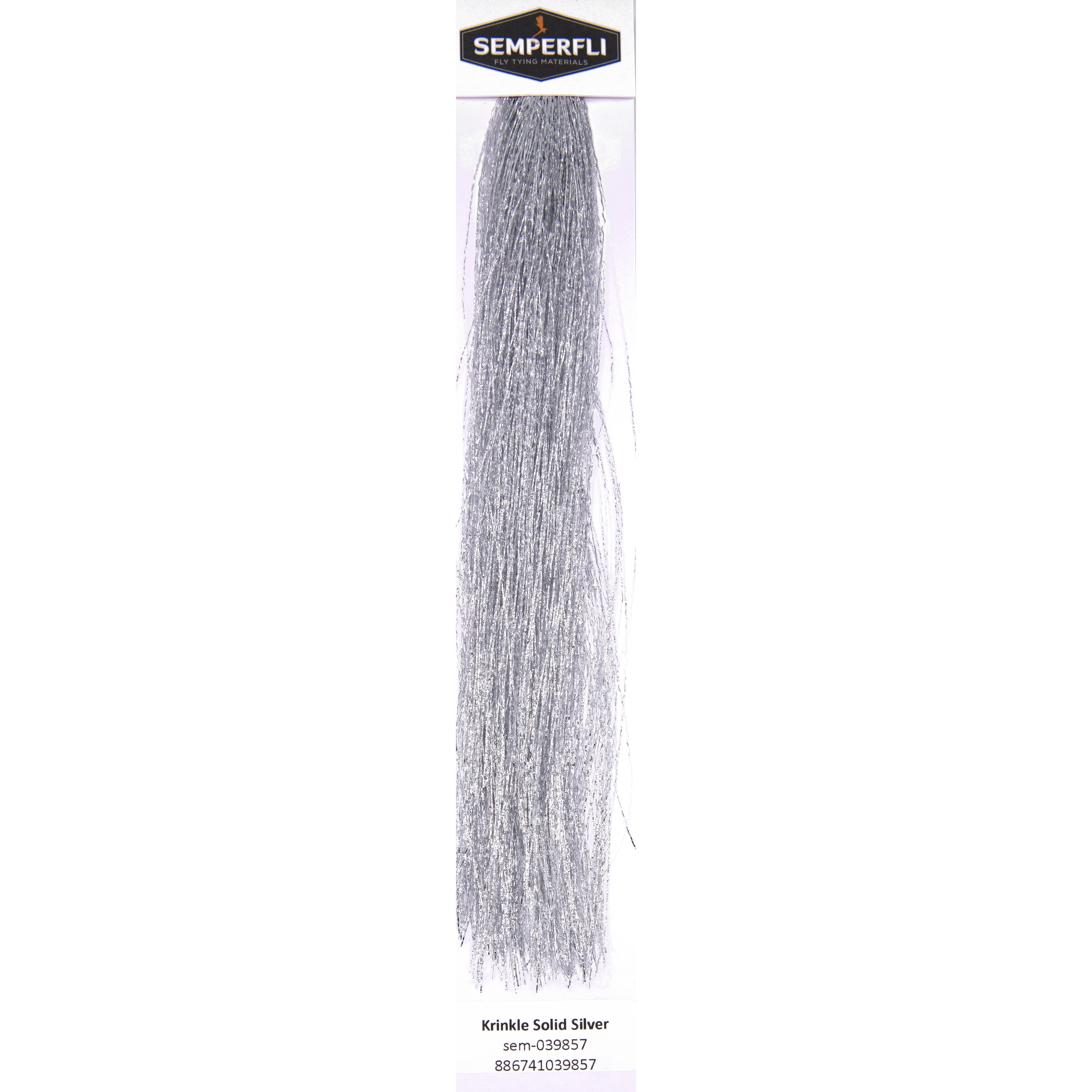 When we manufactured these tinsels we did market research and found that most tinsels were tied in Half, meaning lots of the tinsel in the centre was unuseable plus only Half of each hank could be used for larger predator flies. As a consequence with SemperFlash Krinkle Flash you get 10inch / 25cm long hanks tied at the top rather than center tied tinsels meaning that you can produce really long wings on flies for saltwater or large predators.